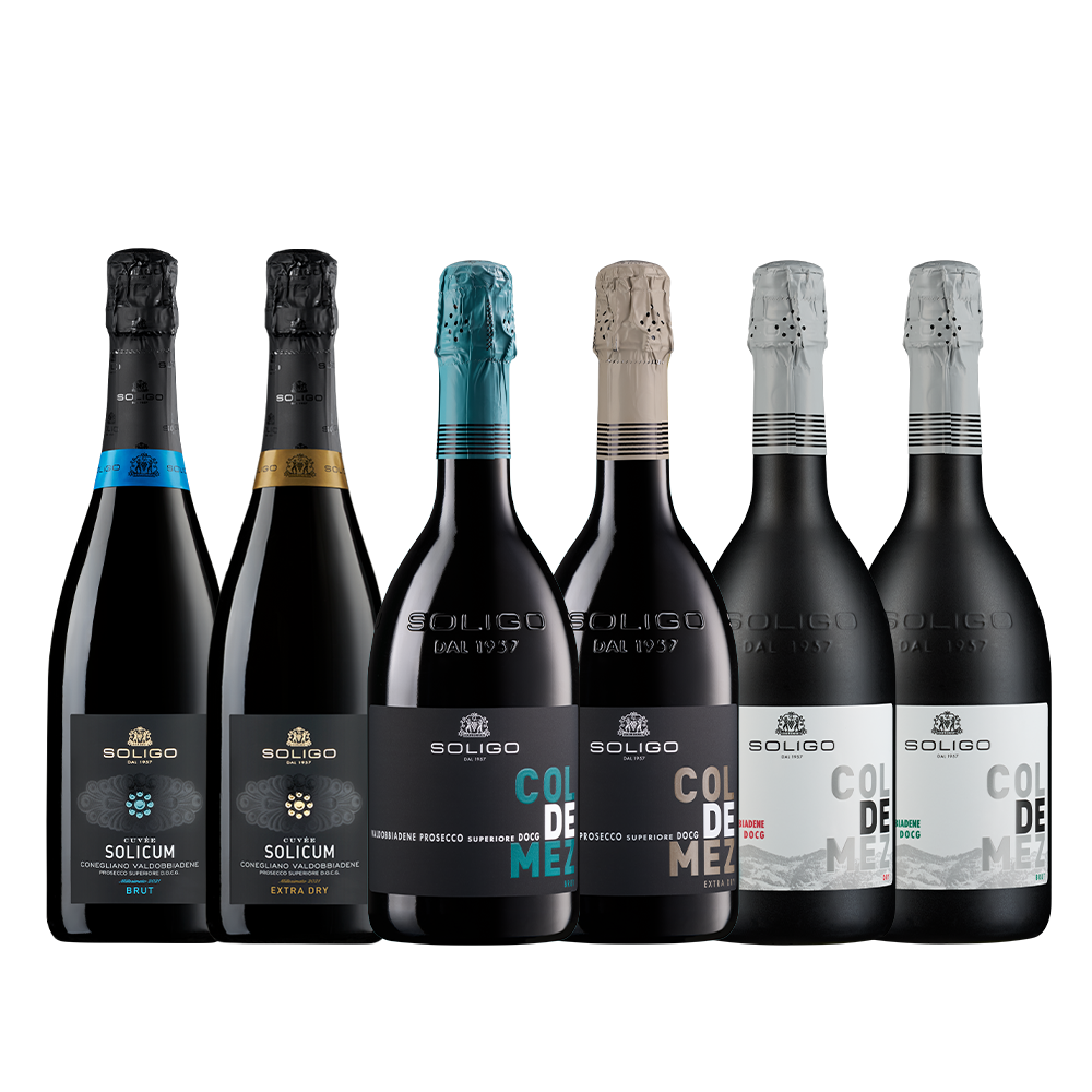 Con questo kit potrai degustare le varie declinazioni del Prosecco Superiore DOCG firmato Soligo.